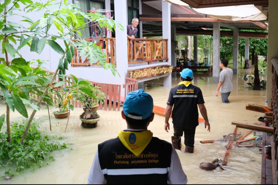 มอบข้าวกล่อง ช่วยเหลือผู้ประสบภัยน้ำท่วม นายภาณุวัฒน์ บุญยะรัตน์ ผู้อำนวยการวิทยาลัยสารพัดช่างพัทลุง พร้อมด้วยคณะผู้บริหาร ครู เจ้าหน้าที่ และบุคลากรทางการศึกษาวิทยาลัยสารพัดช่างพัทลุง S:0