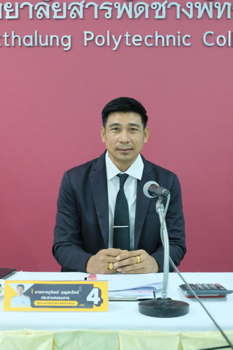 นายภาณุวัฒน์ บุญยะรัตน์ ผู้อำนวยการวิทยาลัยสารพัดช่างพัทลุง เป็นประธานในการประเมินการเตรียมความพร้อมและพัฒนาอย่างเข้ม พร้อมด้วยนายณัฐกร อาจทอง รองผู้อำนวยการวิทยาลัยเทคนิคพัทลุง เป็นคณะกรรมการผู้ทรงคุณวุฒิ และนายชัยวัฒน์ ทิพย์ทอง ครู วิทยะฐานะ ครูชำนาญการ วิทยาลัยสารพัดช่างพัทลุง S:0