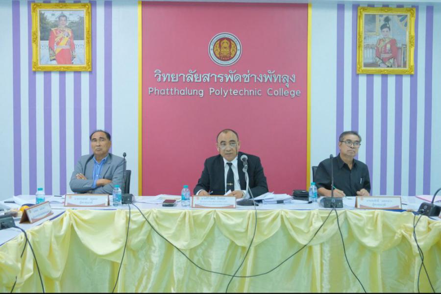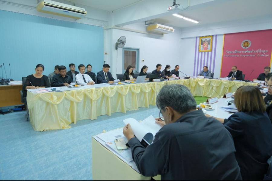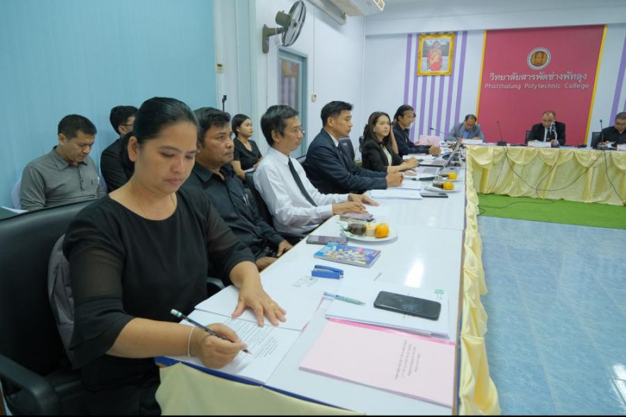 นายภาณุวัฒน์ บุญยะรัตน์ ผู้อำนวยการวิทยาลัยสารพัดช่างพัทลุง พร้อมด้วยคณะผู้บริหาร คณะครู และเจ้าหน้าที่วิทยาลัยสารพัดช่างพัทลุง ???? ร่วมนำเสนอ และให้ข้อมูลในการประชุมคณะกรรมการสำนักงานอาชีวศึกษาจังหวัดพัทลุง เพื่อพิจารณาขออนุมัติเปิดสอนหลักสูตรประกาศนียบัตรวิชาชีพชั้นสูง (ปวส.) ทั้ง 3 สาขาวิชา ประกอบด้วย - สาขาวิชาเทคโนโลยีธุรกิจดิจิทัล - สาขาวิชาเทคนิคเครื่องทำความเย็นและปรับอากาศ - สาขาวิชาเทคนิคเครื่องกล โดมมีนายศิริวัฒน์ รักสกุล ผู้อำนวยการวิทยาลัยการอาชีพบางแก้ว ปฏิบัติหน้าที่ผู้อำนวยการสำนักงานอาชีวศึกษาจังหวัดพัทลุง เป็นประธานในการประชุมพร้อมด้วยผู้แทนหน่วยงานต่าง ๆ ร่วมประชุม และพิจารณาการขออนุมัติเปิดสอนสอนหลักสูตรประกาศนียบัตรวิชาชีพชั้นสูง (ปวส.) ทั้ง 3 สาขาวิชา S:0