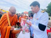 พิธีวางพานพุ่มดอกไม้ถวายราชสักการะ และพิธีเจริญพระพุทธมนต์ และทำบุญตักบาตร ถวายพระราชกุศ